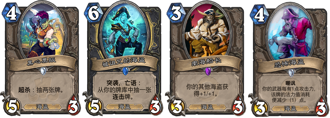 目前在标准模式能够被召唤出来而且比较赚的随从也就上图这些海盗,也许中立卡牌以及盗贼的其他三个未发布的卡位会有新的海盗被发布。从目前盗贼职业发布的卡牌来看,设计师主要扶持海盗贼的大方向应该是没跑了。不知道新版本是否会重现当年海盗战的荣光呢?