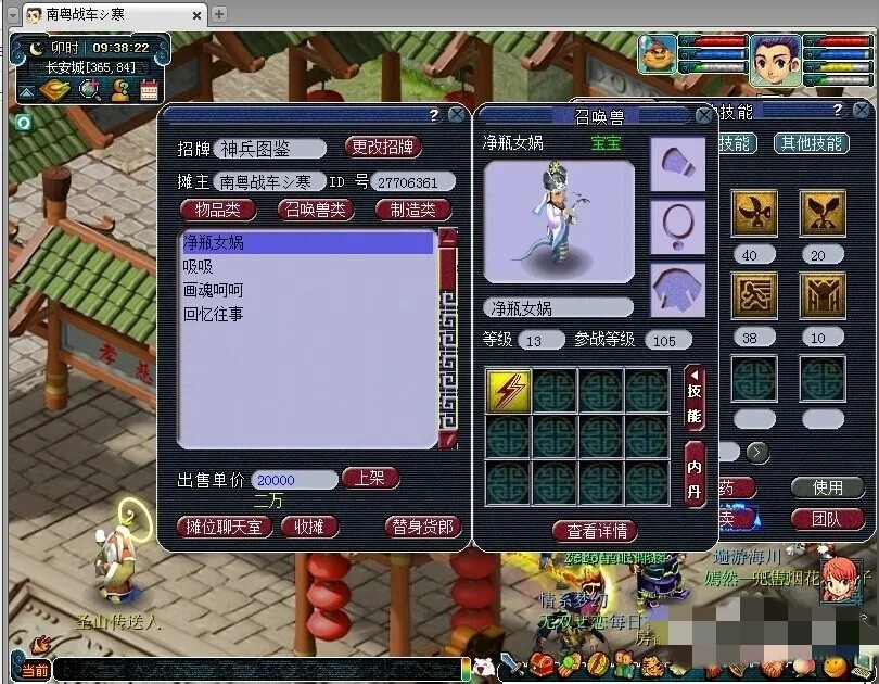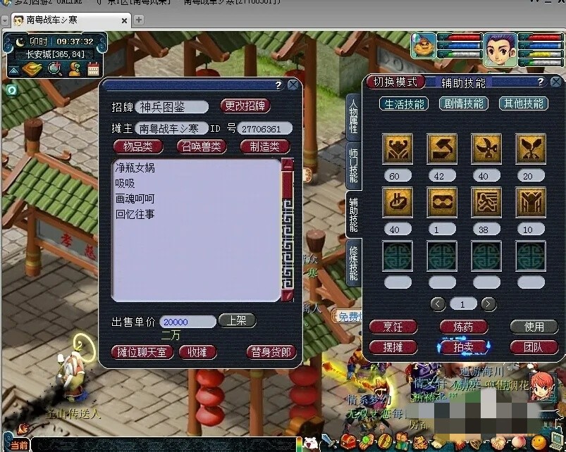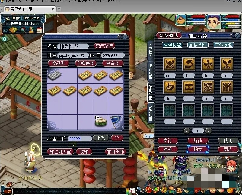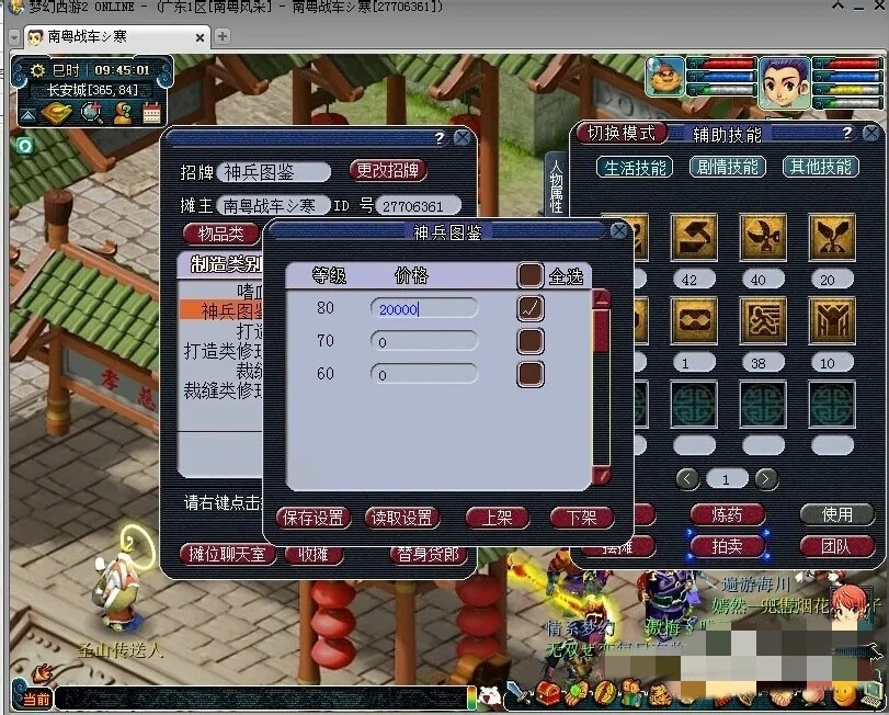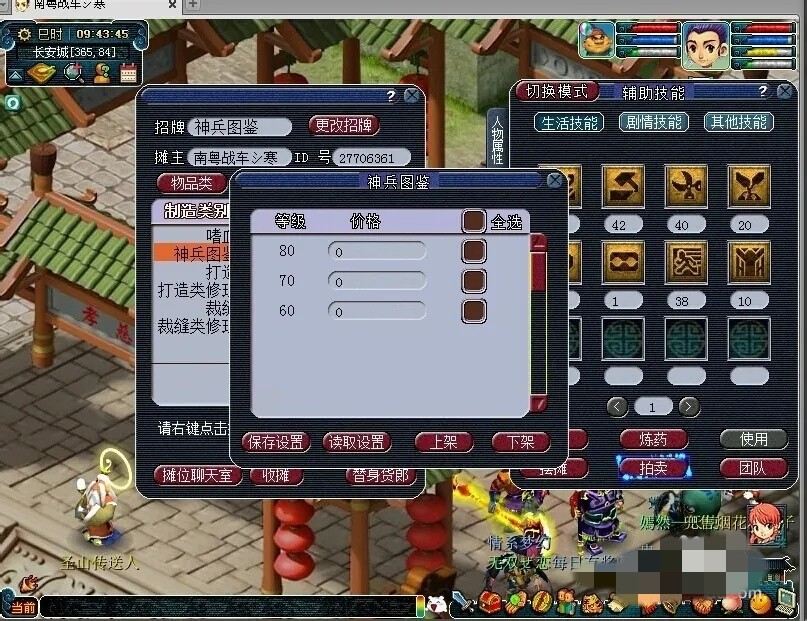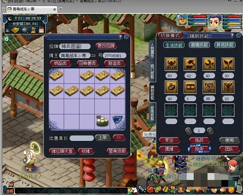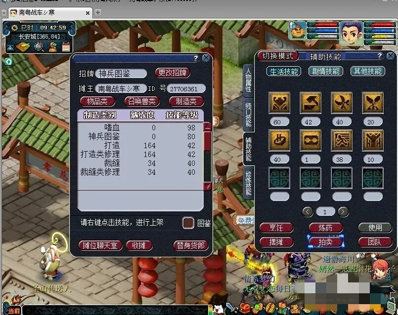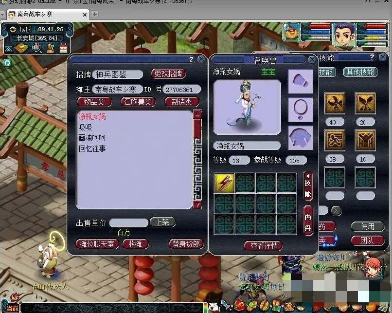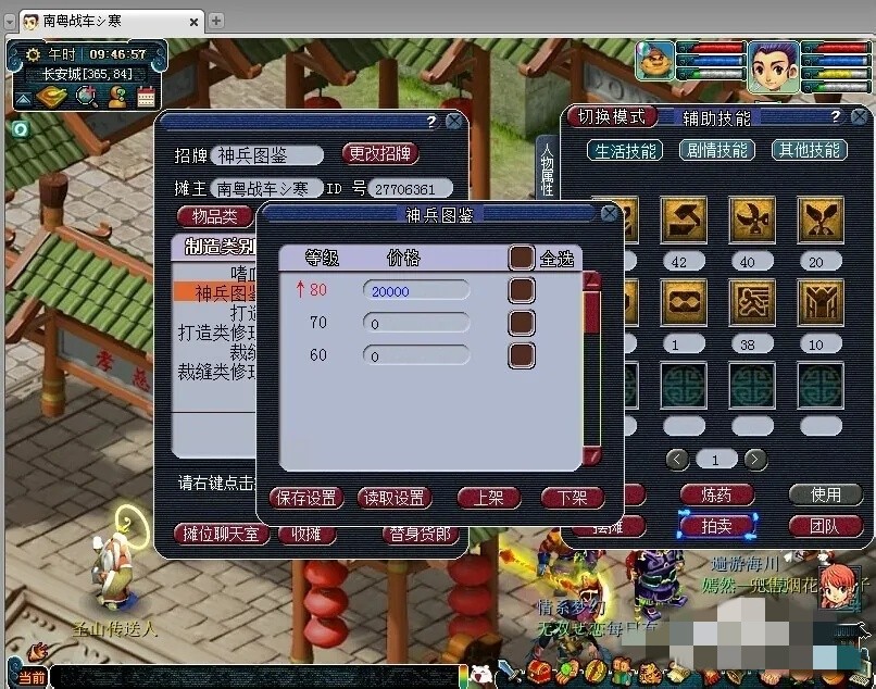 进入长安城,摆摊位置在长安城有许多地方,找到你要摆摊的位置。如:买卖神兵图鉴谱,灵兵图鉴。