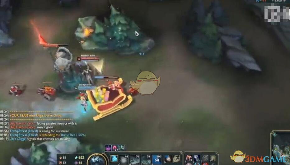 当然想要控制这个雪橇车也不是一件容易的事情,经常玩塞恩的玩家都知道,想要把老司机的大招开好,没有一手出色的车技可是不行的哦。尤其是在面对障碍横行的召唤师峡谷时,很多人经常会碰撞到一些建筑物上面,也就是说这个新模式中的雪橇车,注定只有那些考了“驾照”的老司机才能飙起来,其他人开的就是婴儿车。