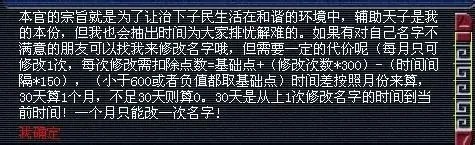 首先,到长安金銮殿(77,38)找到一个名叫戴胄的NPC(就在魏征旁边);和这个NPC对话,会跳出对话框,点确定;如果想修改名字的,点击修改名字,输入想要改的名字,检测;如果出现“名字不合法“,需要输入一个新的名字。检测没问题的,就可以使用新名字了。