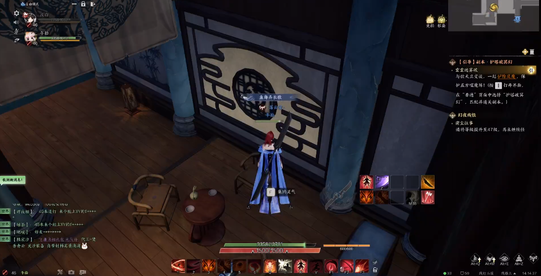 1、来到小茶桌那里,在竹椅边上找到灵体。