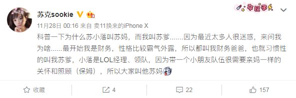 然而就在宝蓝发布微博不久后,一位前电竞女解说、iG俱乐部财务却发布微博表示宝蓝其实是被键盘侠喷走的。