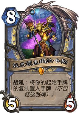Peter:很多新卡都让人觉得非常有趣,像是暂避锋芒,英雄免疫直到下一个回合,这是新卡当中很特殊的设计。我最喜欢的是法师的传说随从妖术领主玛拉卡斯,它的战吼是非常强的,而且这个战吼是以前没有过的设计,所以我最喜欢这张。