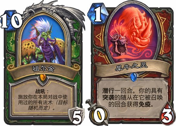 Giovanni:我喜欢那种卡牌效果非常诡异的,就是那种一看到之后会不知道是加分还是减分效果的卡牌。所以我喜欢的是魔精大师兹伊希,这效果乍看之下我不知道到底是对我有利还是对对方有利。但就我个人的话,以《魔兽世界》玩家角度来讲,我最喜欢的是阿曼尼战战熊,它可能不强,但我很喜欢战熊,《魔兽世界》坐骑也是战熊,所以当时就跟团队说:一定要放战熊进去!