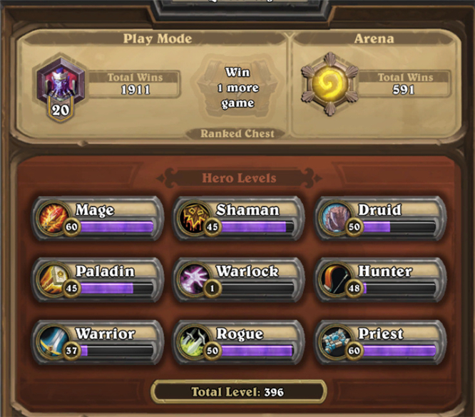 而最近一次的调整,是一个月前的10月份吧,新增了25个等级,新手玩家将从50级开始开始炉石生涯。不过,这对于老玩家来说,几乎没有产生任何影响。