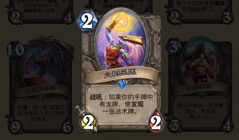 如果手牌中有龙牌则发现一张法术牌,这张卡有点像之前的213发现龙牌有点像,唯一不同的是这次是发现法术。因为只有2费在使用上非常灵活。对于部分脸好的观众来说,万一能拿到一张优质的法术,那岂不是瞬间爆炸?