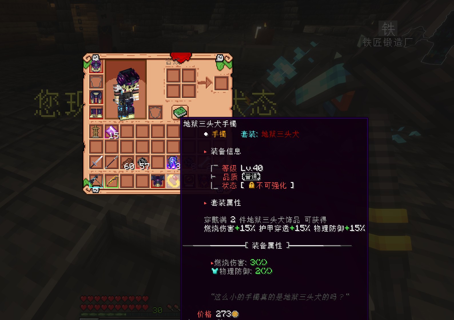 饰品由强大的boss掉落或使用稀有的材料锻造,饰品也具有套装效果