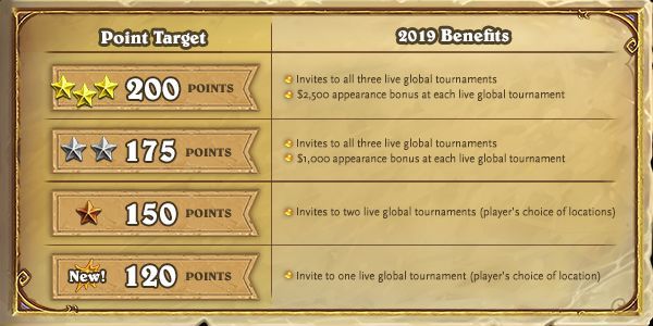 在今年,暴雪推出了一套炉石大师系统,以对顶级的玩家进行奖励,奖励数值基于玩家在前三个赛季的表现情况。在2019年对《炉石传说》比赛进行了改变之后,暴雪将保证那些为了比赛积分而进行了努力的玩家会获得等同于现在甚至更高的奖励。另外,在2018年第一赛季获得的积分将不会在12月1日过期。从12月1日至明年3月31日,玩家将会获得额外的“过渡性”赛季,以累积更多的积分为明年的比赛做准备: