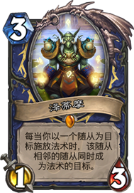 比如说4费一个闪电箭可以打三个随从,一个冰霜震击可以冻三个随从,一个大地震击可以沉默三个随从,想想都很厉害。目前萨满的主流卡组战吼萨、电影萨(我觉得这是下个版本的霸主,下期我会讲到)和偶数萨,战吼萨跟他是最搭配的。所以喜欢战吼萨的朋友可以合一张,另外我能想到的OTK是,在场上如果有3个图腾,先上泽蒂摩,再上2个石化武器,再上一个风怒,一共9费,总共就能造成最少36点伤害了。有兴趣的玩家可以考虑在新版本试一下。