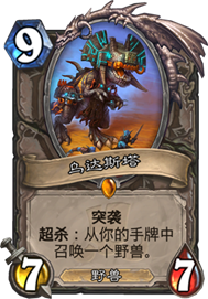 我觉得在亡语猎里面可以加一张(但也不是非加不可)。假如你手里有一张灰熊,可以在打出超杀后把灰熊拉出去,而且是满血的灰熊,这一点算的上是很强的,当然配合魔暴龙更是能将对面的脸都打烂。