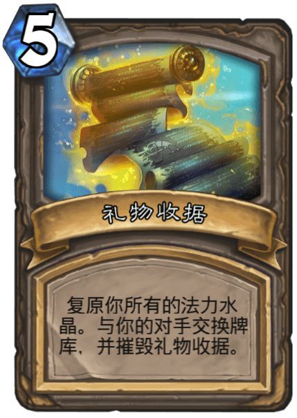 复原你所有的法力水晶。与你的对手交换牌库,并摧毁礼物收据。