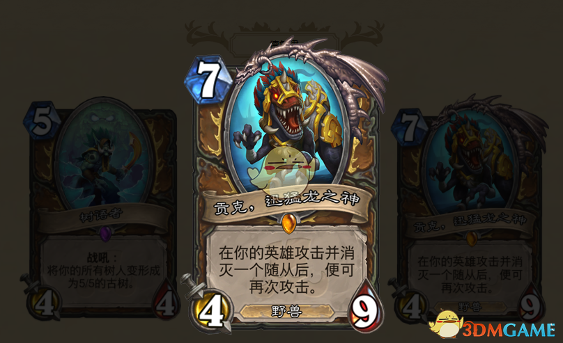7费4/9的身板,无嘲讽,无任何特殊效果,当你的英雄进攻并消灭一个随从之后可再度攻击。个人看法,德鲁伊的英雄本身攻击力就不高,即使变身DK之后也只有3点。所以打出随从的效果并不理想,个人认为这张神之卡有待开发。