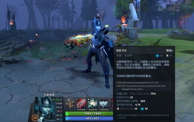 首先,就是关于开模糊躲技能的小技巧,这个小技巧实际上非常实用,绝大部分有投射物的技能都会因此而失去效果,比如狙击手的大招、混沌骑士的锤子等,只需要你距离敌人600码以外,即可成功躲避,600码也就是很多技能的施法距离,以及很多远程英雄的攻击距离,所以准确来讲,这个技能真正可以躲得是弹道,所以在配合幻影突袭的时候,就可以顺利的躲避一些技能,诡计之雾也是同理的,如果你的队友残血,被超远距离狙击了,你开雾也能拯救队友,但是和这个技能的不同是,诡计之雾若是遇见敌人会直接显形,而这个技能则有0.75秒的显影时间,所以说,如果对手对你释放了一个弹道比较快的技能,你秒开模糊也能躲技能!