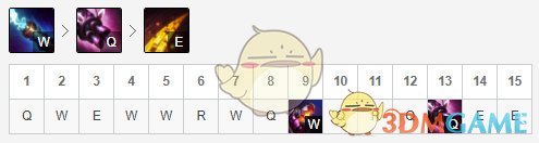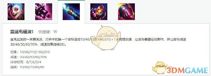该玩法的金克丝最大的伤害来源就是W技能,等级高的W技能CD会慢慢变短,从而提升金克丝的输出能力。