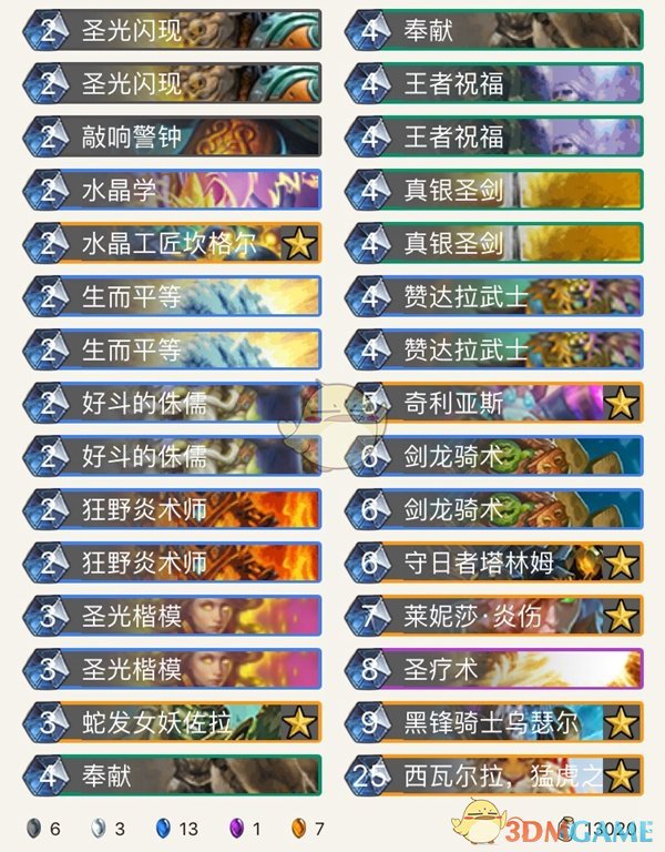 每当萨满一波进化做好斩杀准备时,却发现场上站出一只711,被对面疯狂发表情电脑前IG拍手,真是让人哭笑不得。在这个版本中圣骑士加入了圣光闪现,赞达拉武士,西瓦尔拉等新卡,卡组构筑可能会比以往的奶骑更强,或许小姐姐在这个版本可以玩一玩,那么话不多说,先上卡组。