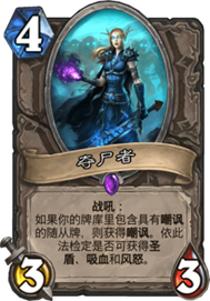 夺尸者在这里是一张很不错的卡牌,但由于卡位紧也没有加进去,卡组中水晶工匠具有圣盾吸血,奇利亚斯具有圣盾嘲讽吸血,夺尸者在面对动物园等快攻时非常厉害,因为对面用生物过圣盾吸血的牺牲很大。