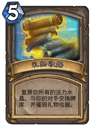5费法术牌,复原你所有的法力水晶。与你的对手交换牌库,并摧毁礼物收据。
