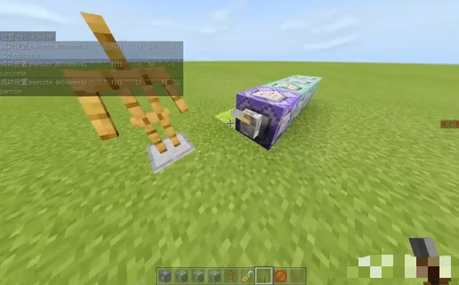 6、最后一个指令为【execute @e[name=a]~~~fill^^51^^^51^50 barrier】;