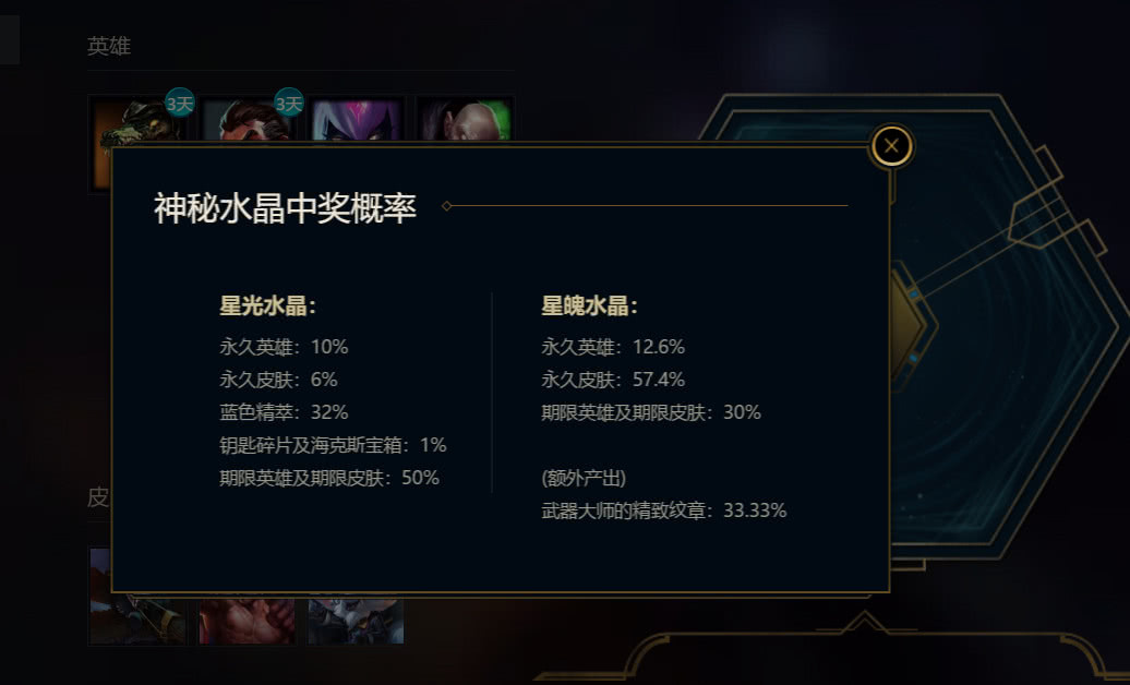 除此以外你也可以用兑换券来抽奖,购买星光水晶和星魄水晶就可以抽奖,神秘水晶中奖概率16%的永久英雄和皮肤,而星魄水晶的永久皮肤和英雄高达70%,可以说是很划算的,毕竟这个是不用花钱就能够抽奖的!