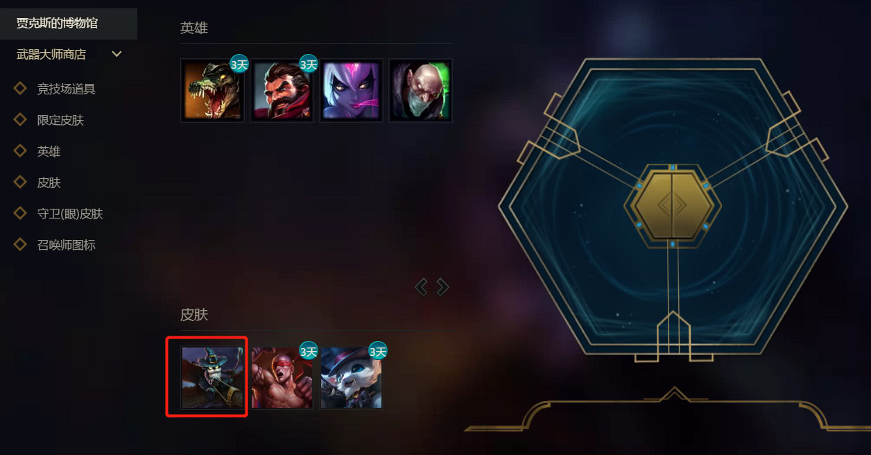 那就是武器大师商店,每个月都可以通过领取门票来参与这个报名活动,通过报名来打一场游戏,只要完成胜利就可以拿到大额的兑换券,即使输了也能够获取到兑换券!这个兑换券可以用来抽奖或者兑换英雄,简单算一下,只要你赢6场胜利,就可以换取一个6300的英雄,当然你要有足够的入场门票!