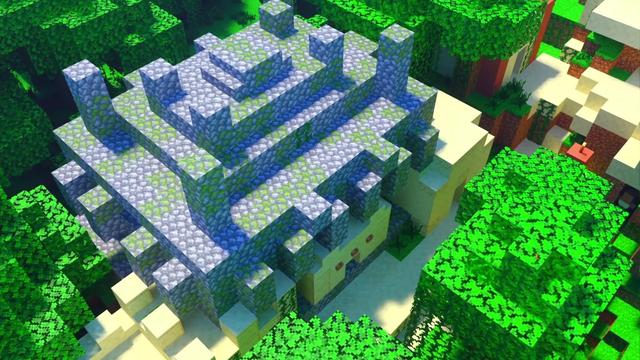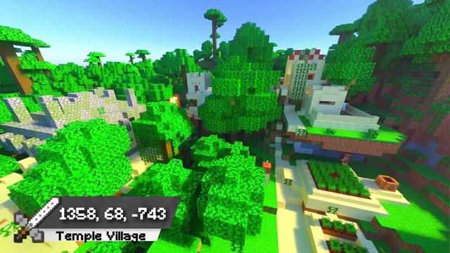 村民的房屋所在的地方往往总是令人意想不到,在这个地图种子当中村庄与之前发生了不同。村民的房屋被附加了一些建筑,与丛林神庙融合在一起,可以称之为mc中比较稀有的罕见地形了。