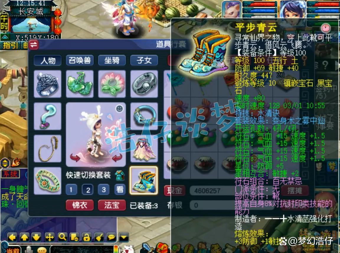 100级带水清诀的雾中仙套鞋子,打了10锻黑宝石!