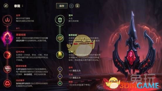 剑魔的符文选择点出坚决系骸骨镀层与复苏/过度生长,主要系点猛然冲击与贪欲猎手。附加属性依然是20适应之力与15-90成长生命值。