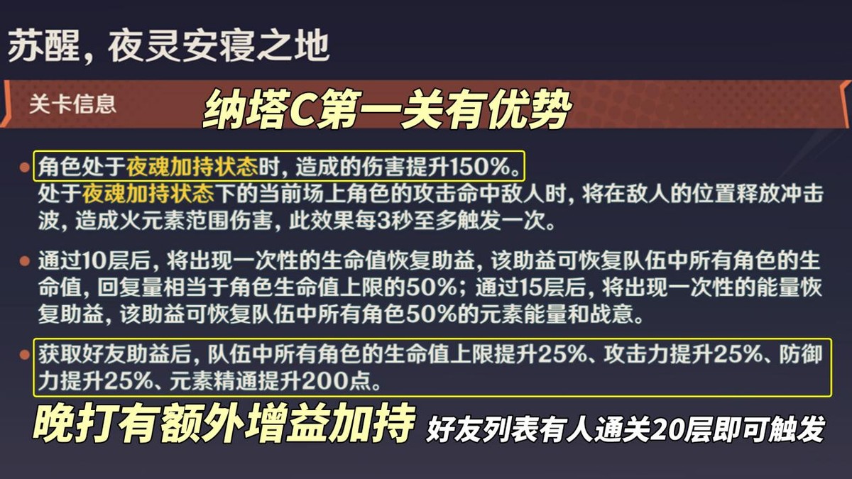 晚打有优势,任意好友通关20层,后续战斗中都会出现特别的「好友助益」buff,提供25%生命、25%攻击、25%防御、200精通。尤其利好反应体系,可将精通用途数值发挥。