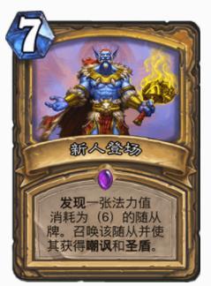 当年的竞技场老大哥是暴雪暗改的最大受害者之一,经常动不动被改剑龙骑术斩棘刀银剑出现概率的乌瑟尔如今只能在角落里瑟瑟发抖。由于骑士的职业技能决定它是一个比较依赖卡牌质量的职业,不能返场就被压着打(牧师同理),所以新卡的出现率和好坏将直接决定了新版本骑士的梯度。骑士最强新卡就是这张新人登场了,本身3选1很难亏,发现受损的机械剑龙或者饥饿的双头怪就能直接劝退。而且他完美契合新版本超杀机制——我血多不容易被超杀,而且带嘲讽还能保护我的小怪不被超杀,美滋滋~
