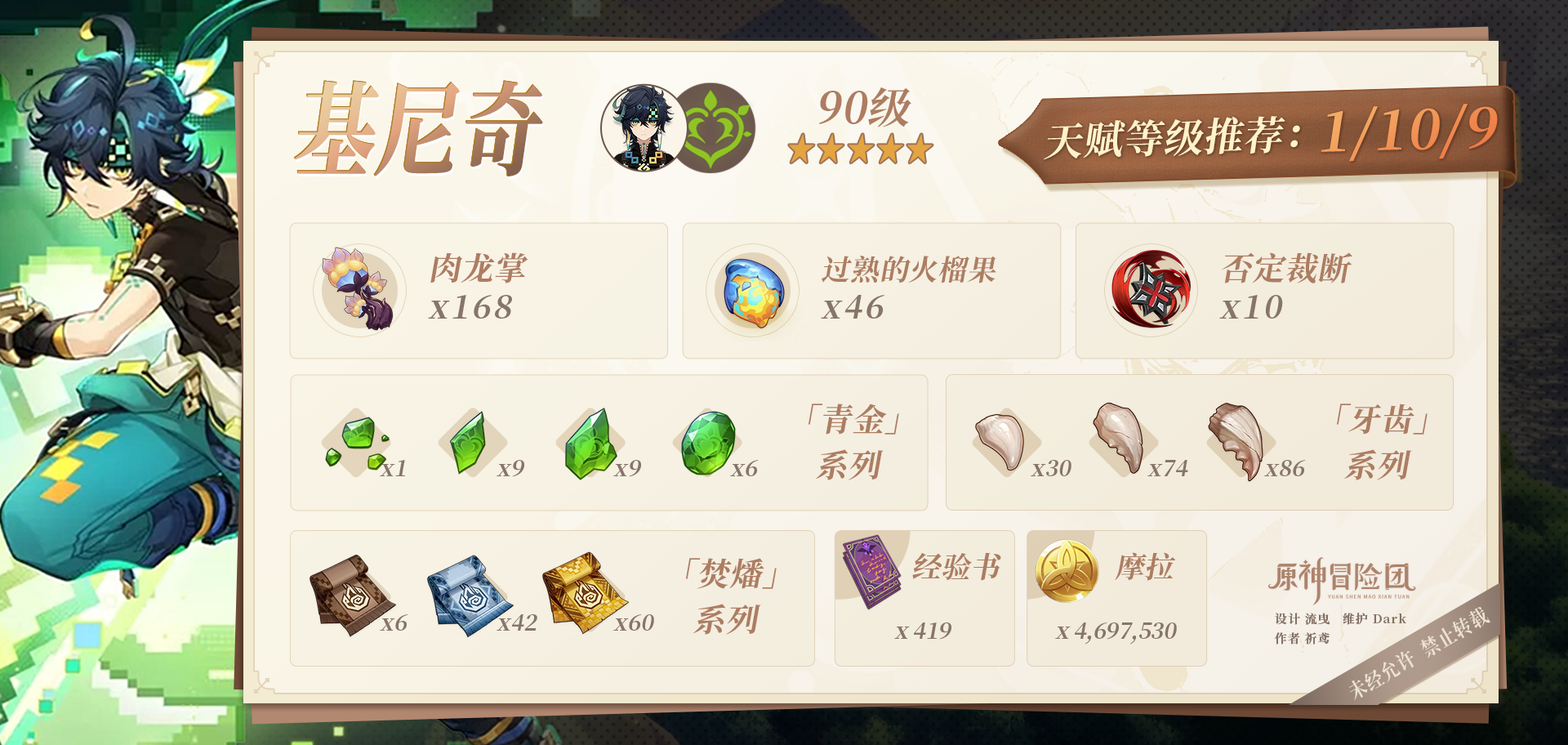 大家好呀,这里是祈鸢,本期给大家带来的是,基尼奇所需的突破素材收集