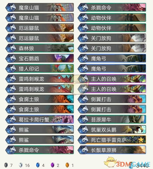 在安戈洛版本中速猎大火之后,犀牛在几个版本都没有进构筑了,直到砰砰计划版本末期中速猎再次以黑马卡组登场,让我们重新见识了犀牛在对阵慢速卡组时强大的压场能力以及在对阵快攻卡组极差的身材和强大的崩盘能力~