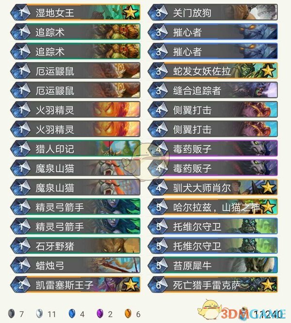 第一套卡组是纯正的任务猎,做任务速度较快,伴随这新猎人橙卡山猫之神的登场,以及毒药贩子的爆炸特效,任务猎终于可以一试了~~为了可以奇数偶数卡组我选择满编催心者。十分看好任务猎在新版本的强度,一定会比之前版本有较大的提升,至少是T3强度了。安戈洛版本初期被各大主播推荐(骗尘),合成了猎人任务的小伙伴们加油行动起来啦~~