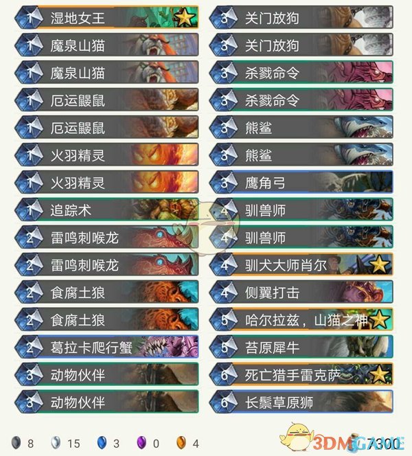 还有一套卡组则是任务猎和中速猎的混合体系,之所以新版本这样的构筑可能,主要是因为新的猎人橙:山猫之神。