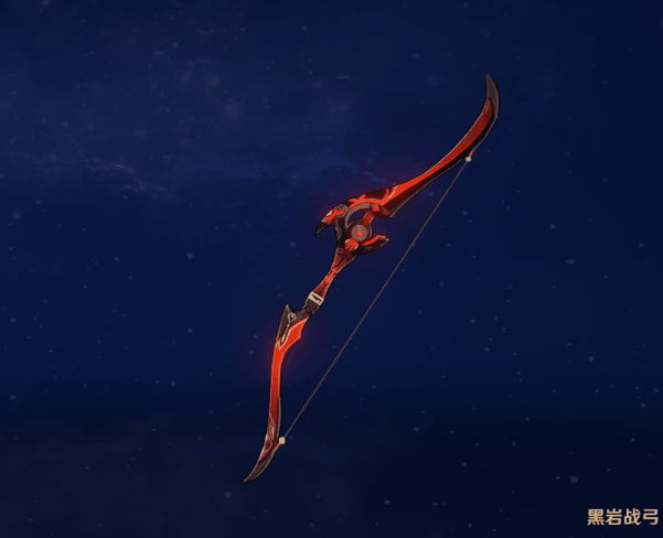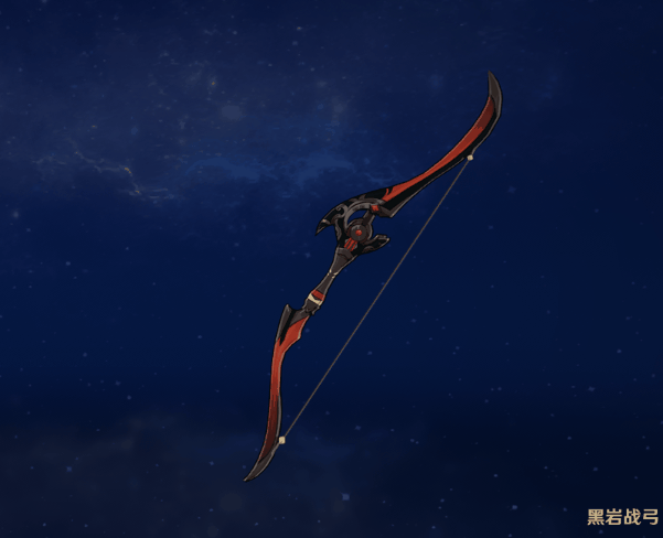 武器介绍:以黑岩塑成的弓。弓臂坚硬无比,只有膂力绝人的弓手才能尽心所欲地使用。