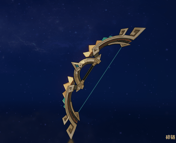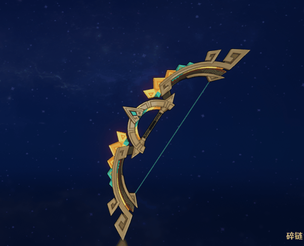 武器介绍:装饰着玉石的长弓,弦上似乎总是缠卷着轻柔的风。传说是在更古老的时代中由龙的工匠所锻。