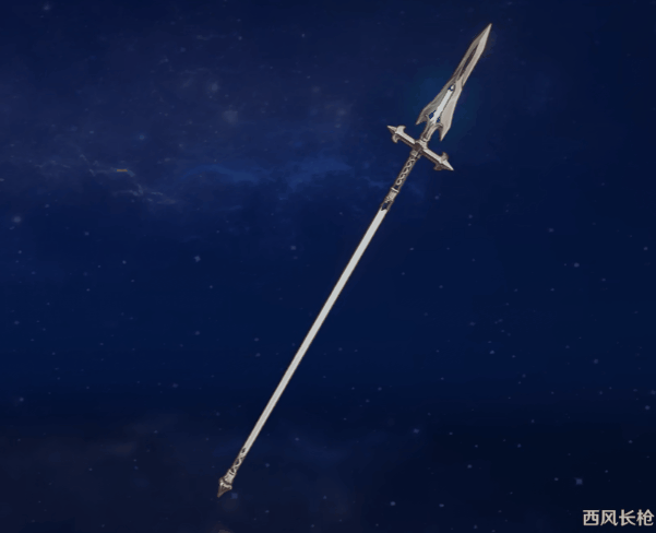 武器介绍:西风骑士团的制式长枪。枪杆直挺,枪尖轻风流溢。
