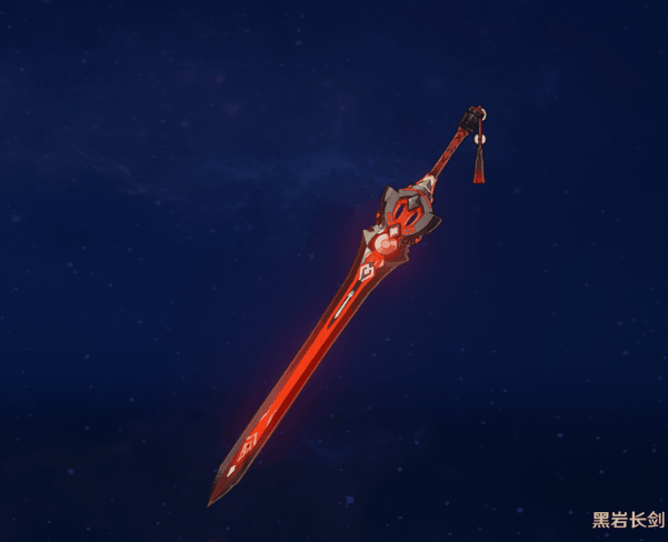 武器介绍:黑岩锻造而成的长剑。玄色的剑身隐隐流露血光。