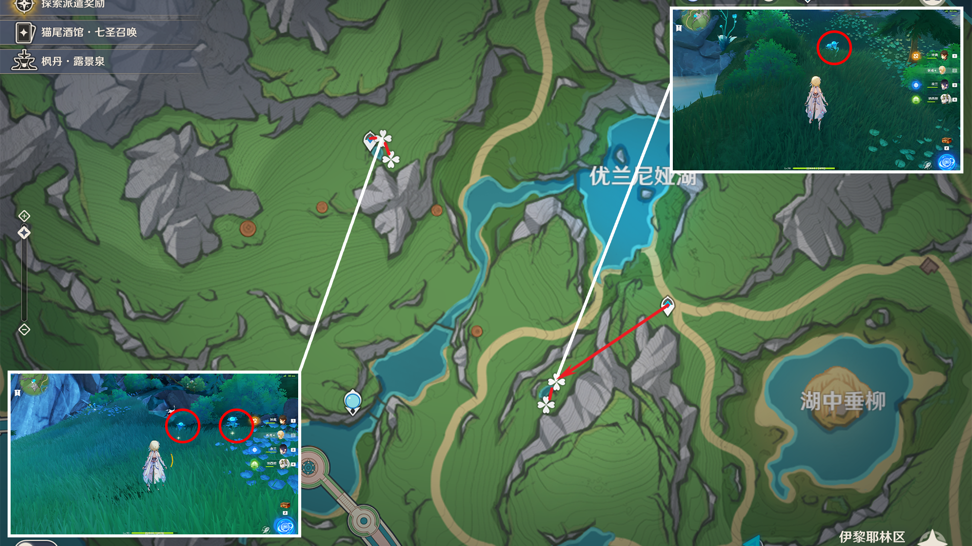 在做完任务「伊黎耶的野精灵」后,湖中心出现新的湖光铃兰