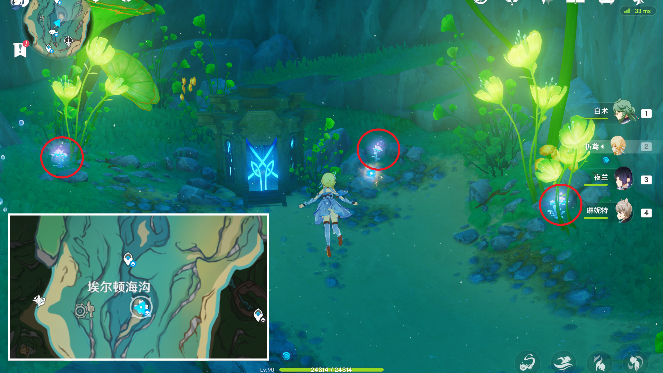 (1)可以先来到白淞镇,安特曼处可以购买5个海露花