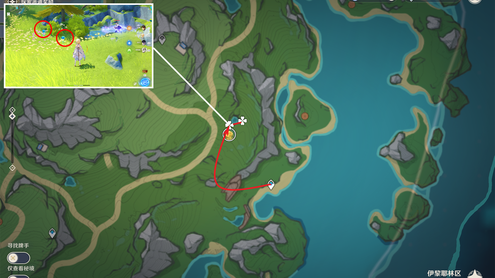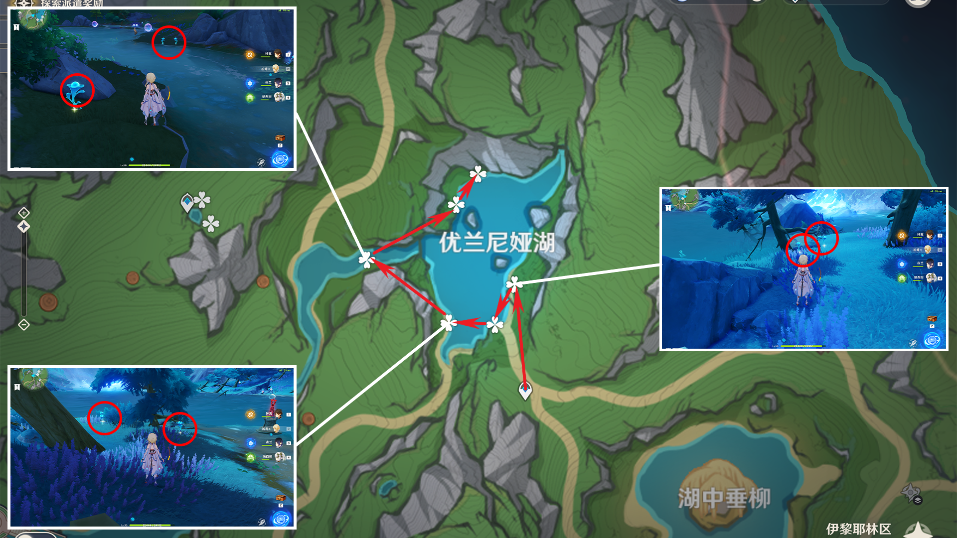 在做完任务「伊黎耶的野精灵」后,湖中心出现新的湖光铃兰