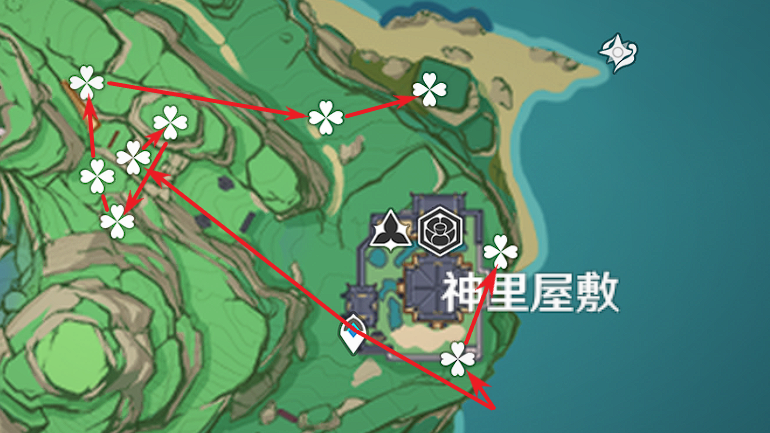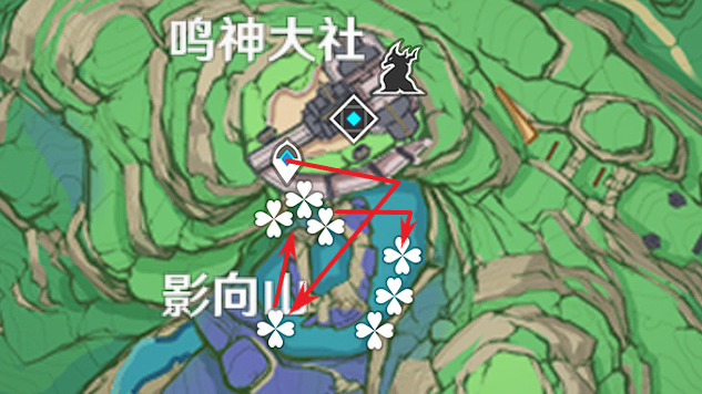 最后再回传送点,来到神社旁的大坑(神樱大祓的坑)下去到最底层,绕一圈就能找齐