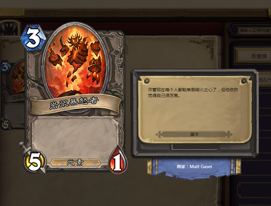 对战拉法姆第一形态时,把5-1岩浆暴怒者加入卡组中,他会吐槽:“你怎么会把这货加到卡组里?”连暴雪爸爸都要自己吐槽可怜的岩浆暴怒者,心疼岩浆暴怒者一秒钟。