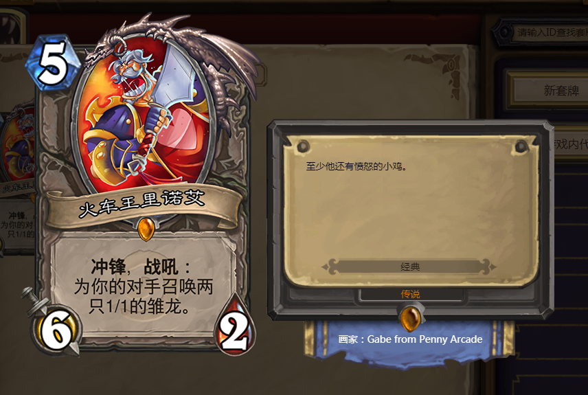 还有一个,拉法姆第一形态时用一套全金的卡牌,英文直译拉法姆会说:“你的卡组是全金的?你的收藏品简直能够和我的媲美!”不过国服把后半句翻译成了“我们交个朋友吧!”来自当时大火的网络用语:土豪我们交个朋友吧。