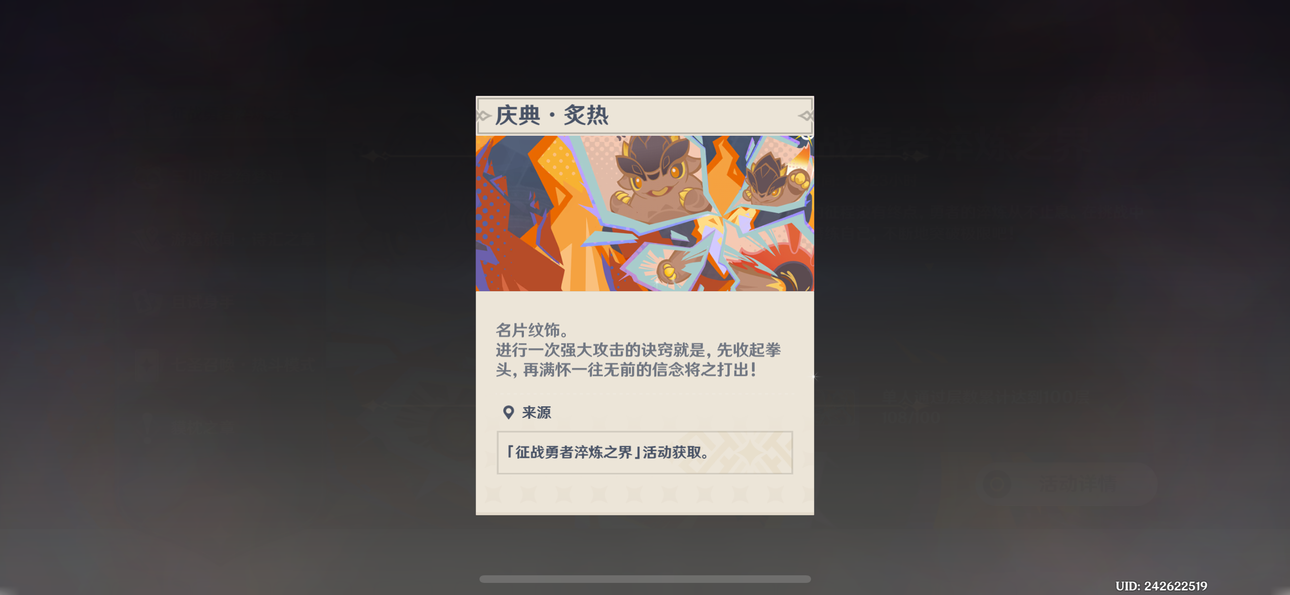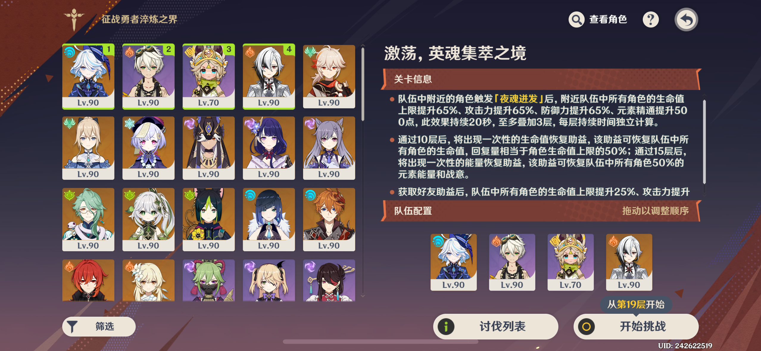 今天活动最后一关也是夜魂迸发增益,纳塔一个也没抽,带个小卡齐娜反正最后一关了肯定能拿到名片就随便打打。