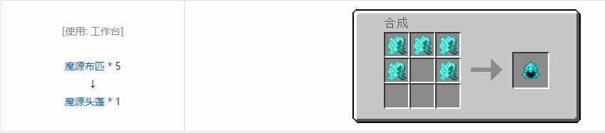 用魔源布匹合成,提供护甲值1点。耐久值55,不可堆叠。