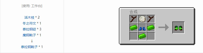 用泰拉钢锭合成,提供护甲值3点,盔甲韧性3点。耐久值442.不可堆叠。加1.5的击退抗性。