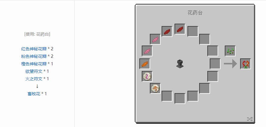 畜牧花(Pollidisiac)消耗魔力(Mana)向工作范围内的成年动物喂食合适的食物,使其繁殖。并不适用于幼年生物。
