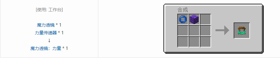 力量透镜可以像活塞一样,将魔力脉冲命中的方块向命中方块的另一面推去,且只能将活塞可推动的方块推动。