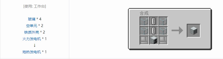 地热发电机是一种使用岩浆为燃料的发电机。它内置最大储存24000mB*的岩浆,可以使用岩浆桶或岩浆槽为其添加岩浆。