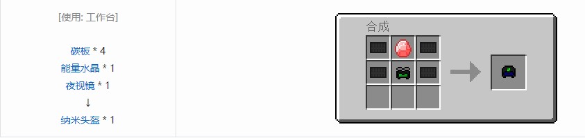 纳米头盔是一种用电力损耗代替生命值损耗的装备,穿齐整套纳米装备防御力很强,可抵挡熔岩与虚空的伤害只要你电量足够。